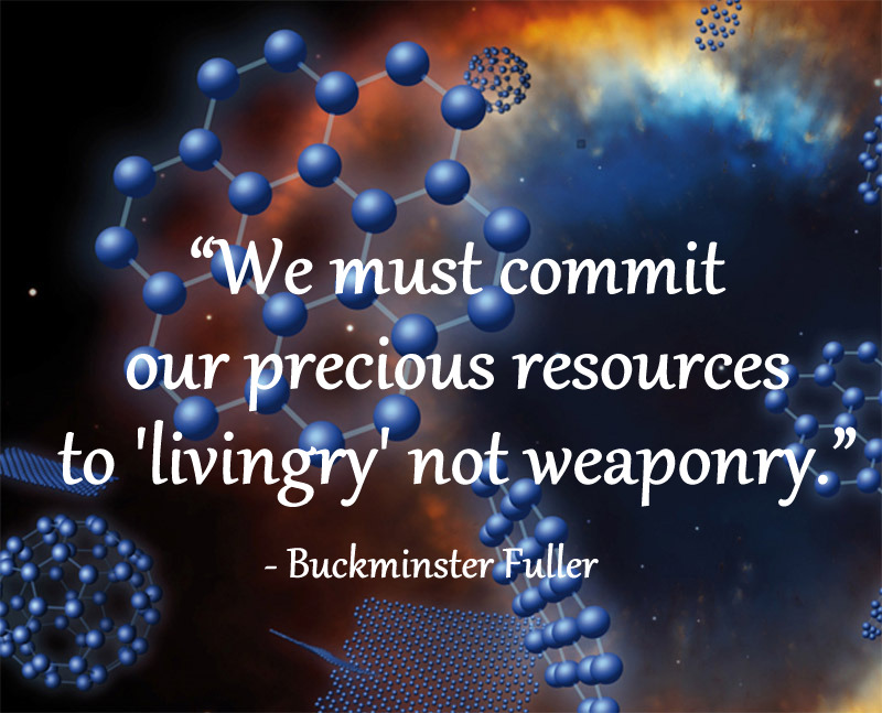 “By simply shifting our focus away from weaponry and toward livingy, we can create a world that works for 100% of all humanity, without causing harm to the environment.”