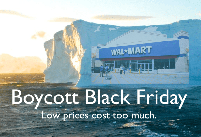 Our government says it’s our duty to keep shopping, when that is the very thing killing our planet. It is time for a spending strike to show that we can turn on and off the precious spending spigot at will. Could we  choose certain days on which to exit the economy as a demonstration of that power?  On Black Friday? Thanksgiving? Every first day of the month?  On these days we would do and spend nothing. We would not stock up before or after, but just make do with less. A sacrifice for the planet. We could refuse to buy anything made from fossil fuels, which is almost everything. Drive as little as possible. Eat no meat (which is the number one thing you can do to reduce your carbon footprint). Turn off the lights. Light the candles. Pray.