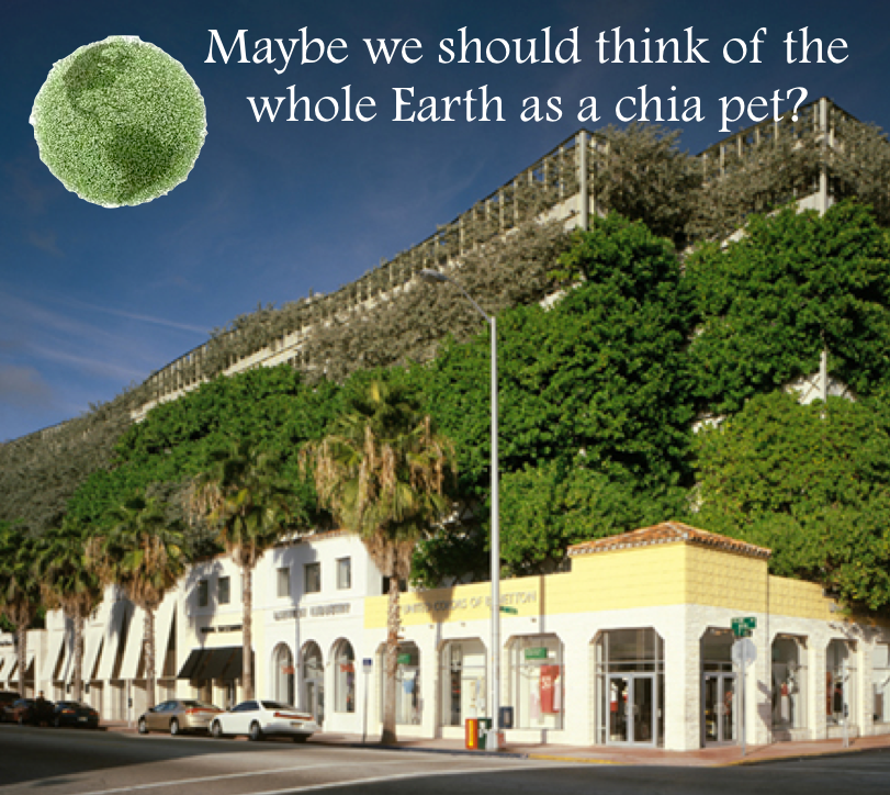 And then Bucky would get down on his knees and beg us to wake up, and stop decimating our planet by destroying our natural lands so thoughtlessly, since they are the lungs of the planet. He would implore us to instead turn the whole darn United Spaceship Planet Earth into a (ch-ch-ch-) Chia Pet, before it is too late.