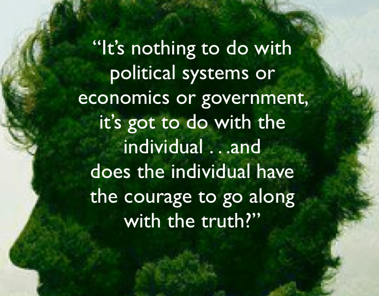 _ Everything is on the line. “The legacy of humanity is being held in probate by general ignorance, fear, selfishness and by bureaucratically maintained incumbent power structures.”